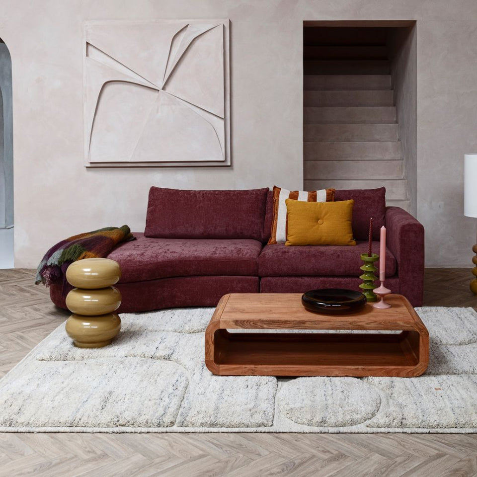 Burgundy (#02) is een diepe, warme roodtint met een vleugje paars, die luxe en karakter toevoegt aan je interieur. Deze kleur werkt prachtig als blikvanger in een modern, minimalistisch huis, maar komt ook tot zijn recht in een klassiek of vintage interieur met donkere houtsoorten, messing accenten of een rijke stof als fluweel. De unistoffen van 4x6 sofa zijn effen gekleurd en daardoor bijzonder veelzijdig. Deze specifieke stof heeft een subtiele glanzende uitstraling, waardoor de diepe bordeauxkleur extra goed tot zijn recht komt. De structuur voelt zacht en stevig aan, perfect voor dagelijks gebruik én voor wie durft te kiezen voor een uitgesproken maar stijlvolle look.