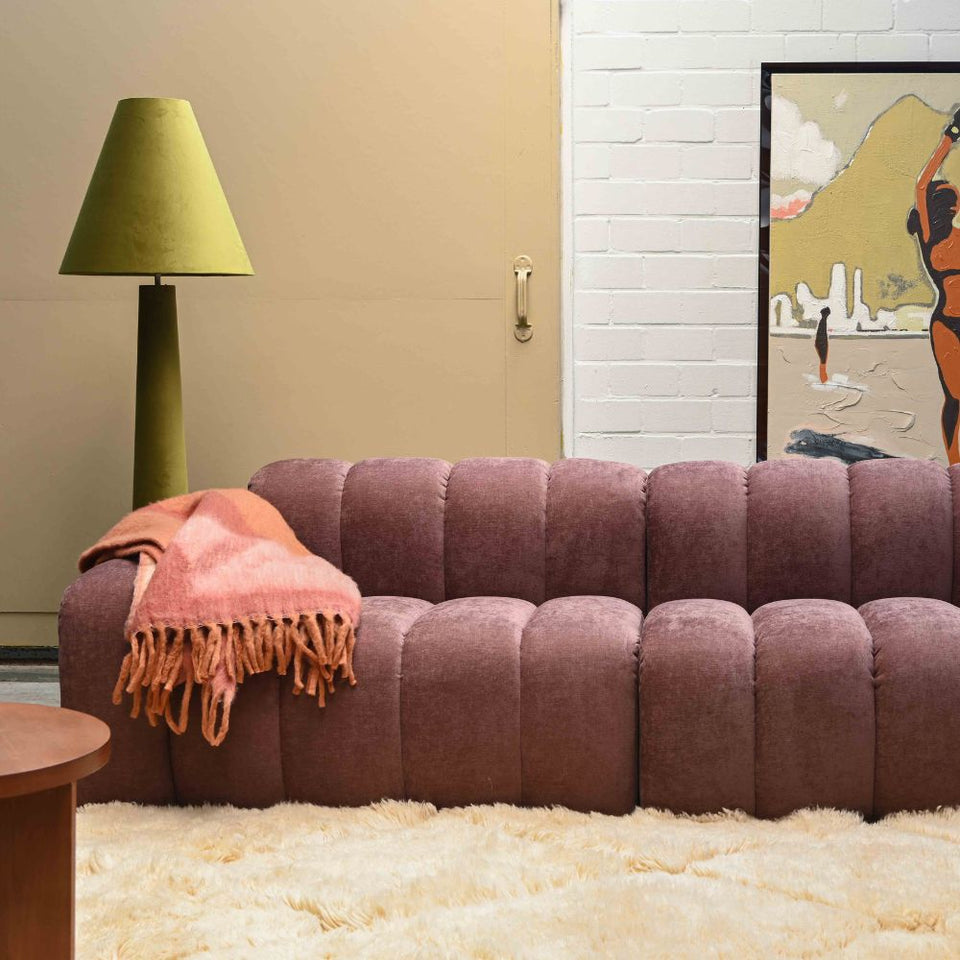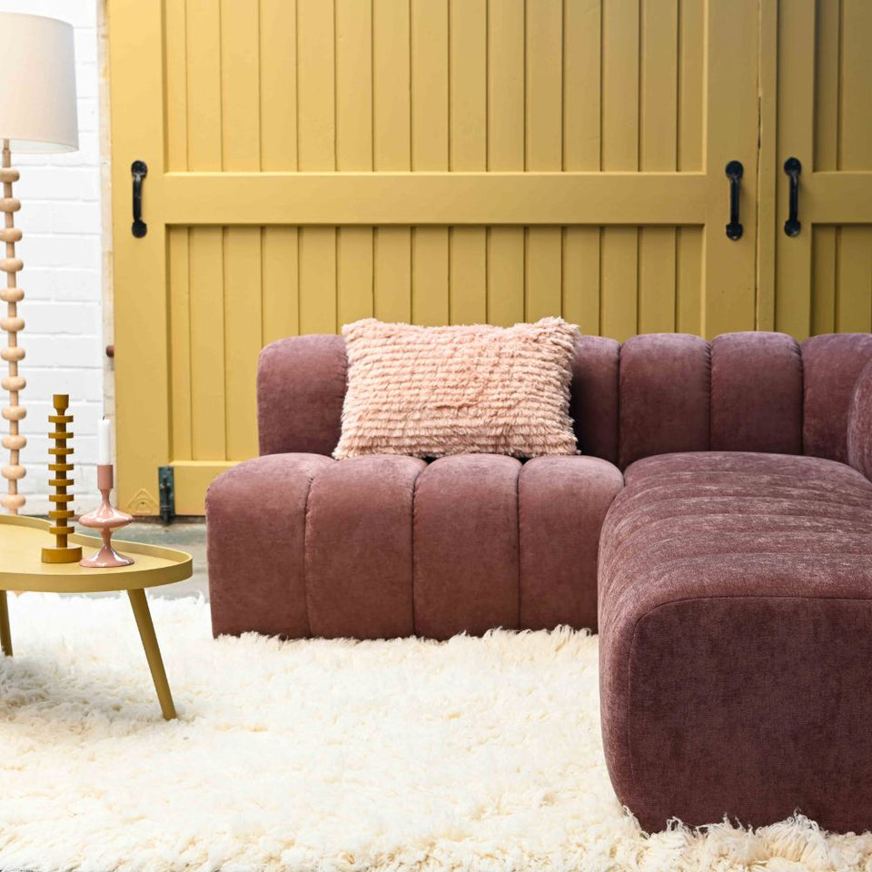 Fabric #02 burgundy has a subtle nap. This can make the fabric appear slightly lighter or darker from different angles. This natural light effect is part of the fabric's character and gives the sofa added depth and vibrancy.
